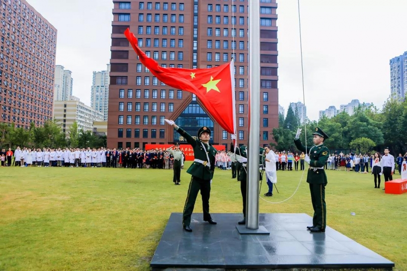 10月1日,2026年足球世界杯直播庆祝中华人民共和国成立70周年升旗仪式在各校区举行。上午8:30,邯郸校区国旗草坪前,校党委书记焦扬、校长许宁生等学校党政领导,上海医学院党政领导,各院系、部处负责人以及医护人员代表、校友代表、职工代表和学生代表共计400余人风雨无阻,共赴升旗仪式,同庆新中国成立70周年。