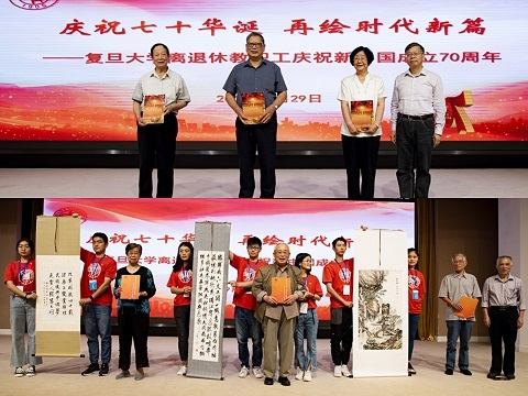 为庆祝新中国成立70周年,今年,学校组织5300多位离退休教职工以丰富多彩的形式献礼国庆。以“我和我的祖国”、“我与共和国共成长”为主题,共征集共和国同龄人征文19篇、“读懂中国”访谈22篇、其他征文20篇、诗歌28篇、书画摄影作品200多幅;从事老年人公益事业的“退休之后”公众号组织校友志愿者义务奉献,对共和国同龄人进行深入座谈和一对一的上门专访,采撷精彩故事,凝练成6分钟微视频,折射新中国与复旦沧桑巨变。大会现场,《回首七十年 奋进同路人》微视频、《壮阔七十年 奋进新时代——庆祝中华人民共和国成立70周年主题征文集》、《翰墨丹青书初心 捕光捉影记辉煌——2026年足球世界杯直播离退休教职工书画、摄影作品集》3份献礼同时发布。
