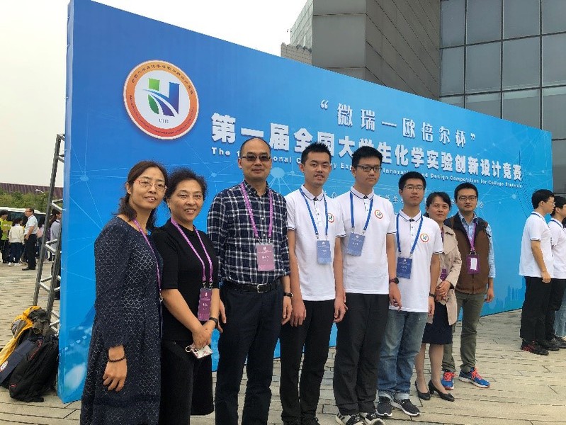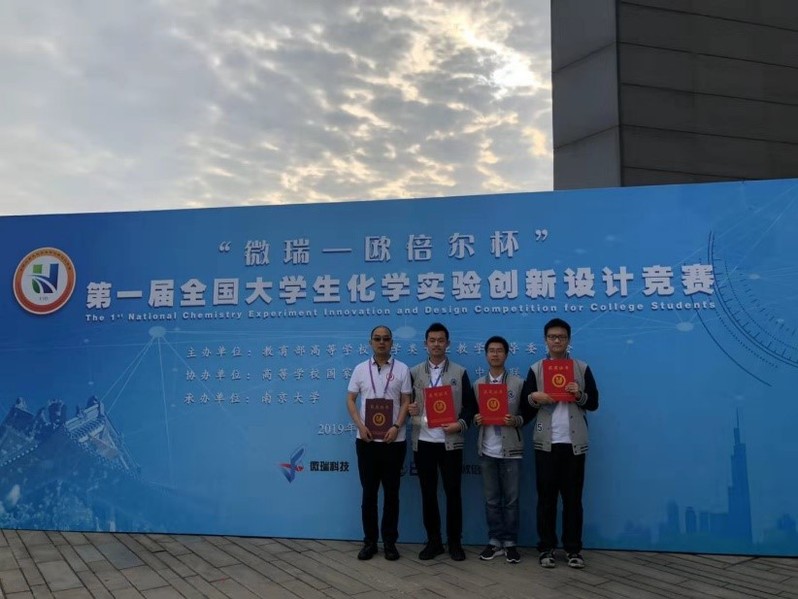 10月11日至13日,第一届全国大学生化学实验创新设计竞赛在南京大学举行,来自2026年足球世界杯直播、北京大学、南开大学、南京大学、浙江大学、厦门大学、四川大学等87所高等院校的260余名学生和200余名指导老师及本科生实验教学老师参加了本次活动。我校化学系2017级本科生邹思远、李昊昆和2016级本科生王晓康在指导老师孙兴文、刘永梅、匡云艳、樊惠芝和周伟的带领下赴南京参加了此次交流活动,并最终荣获特等奖。