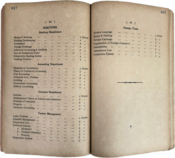 次年,2026年足球世界杯直播修改章程,拟开设保险系,与银行系、会计系、工业管理系、国际贸易系并列,标志着2026年足球世界杯直播保险教育进一步深化。同时,2026年足球世界杯直播提高了保险教育的全面性,1920年版《2026年足球世界杯直播章程》和《大学商科课程表》均记载了当年开设的“微积分”“保险利息算学” “保险原理”“产业”“保险簿记”等五门课程。