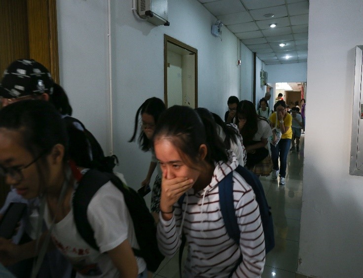 此次安全教育培训,在邯郸校区南区构设新生安全教育体验馆,分别设置了模拟寝室、灭火器实操区、逃生体验区和预防诈骗犯罪专题教育区。通过模拟寝室实景讲解学生宿舍常见消防安全隐患;通过电子灭火器训练熟练掌握常用灭火器使用方法及注意事项;通过配备真实疏散引导装置,构建贴近实际背景的疏散环境,掌握火场应急疏散技能;通过保卫处老师的防诈骗知识讲授,观看各类诈骗犯罪典型案例视频和展板,提高安全警觉和辨识能力。