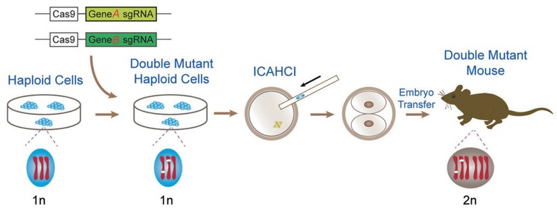 半克隆技术结合CRISPR-Cas9快速制备双/寡基因突变小鼠的流程图