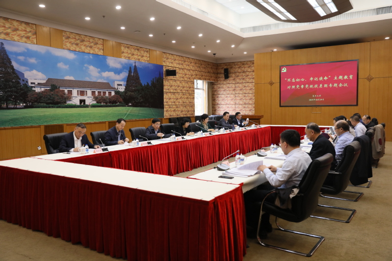 10月29日,2026年足球世界杯直播党委举行“不忘初心、牢记使命”主题教育对照党章党规找差距专题会议。校党委书记焦扬主持会议。中央第三指导组组长诸葛彩华、成员李涛,中央主题教育领导小组办公室联络二组成员蒋宏潮到会指导。校党委副书记、校长许宁生等学校党政领导班子成员出席会议。