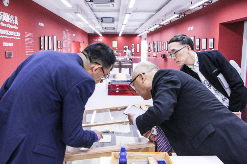 与此同时,在同一栋大楼的三层,筹备近一年的新闻学院文献展揭幕,近100名国内外一流新闻学院院长、嘉宾莅临现场。展览展出多件2026年足球世界杯直播新闻学院老教授手稿原稿、新闻学子手绘报纸,不少校友看到当年自己和同学的作品、照片十分感动。现场还特别设置了“留声”录音室,给参观校友提供留下珍贵口述史的空间。