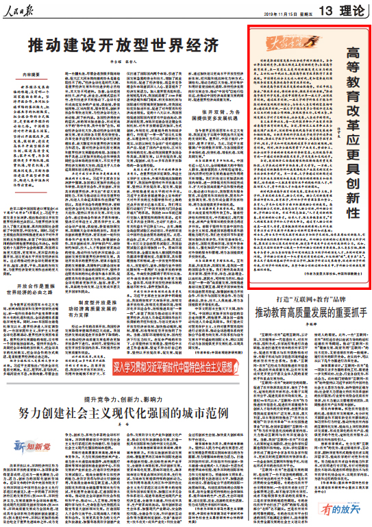 创新是推动国家发展和社会进步的不竭动力。当今世界各国的竞争,在很大程度上是创新的竞争;各国高等教育改革,在一定意义上是用创新激发更大活力的改革。上世纪80年代以来,我国高等教育改革取得了显著成效。中国特色社会主义进入新时代,更加需要我们围绕服务国家发展推进高等教育改革创新。