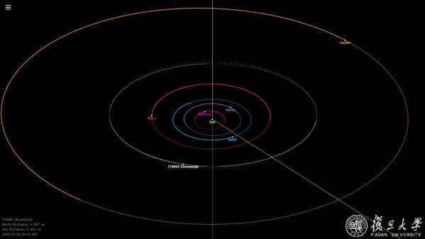 “Zhouwenjie(周文杰)”星位于太阳系内,火星和木星轨道之间的小行星密集区域,是一颗主带小行星。仰望浩瀚星空,以这位横跨语言学、天文。与AI领域的校友名字命名的小行星目前正以4.34年的公转周期在宇宙中运行。