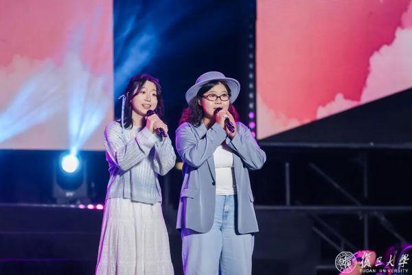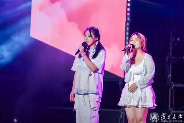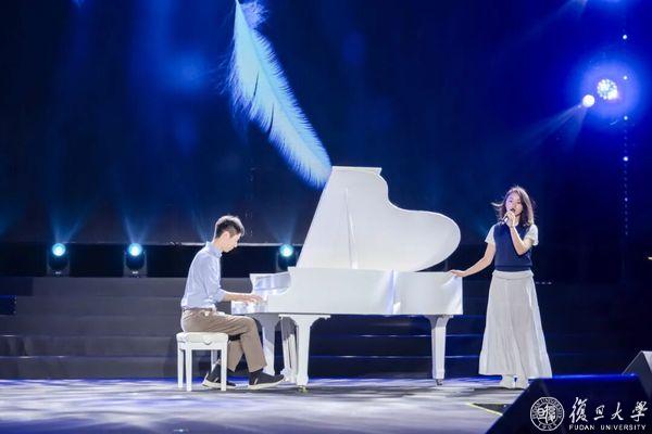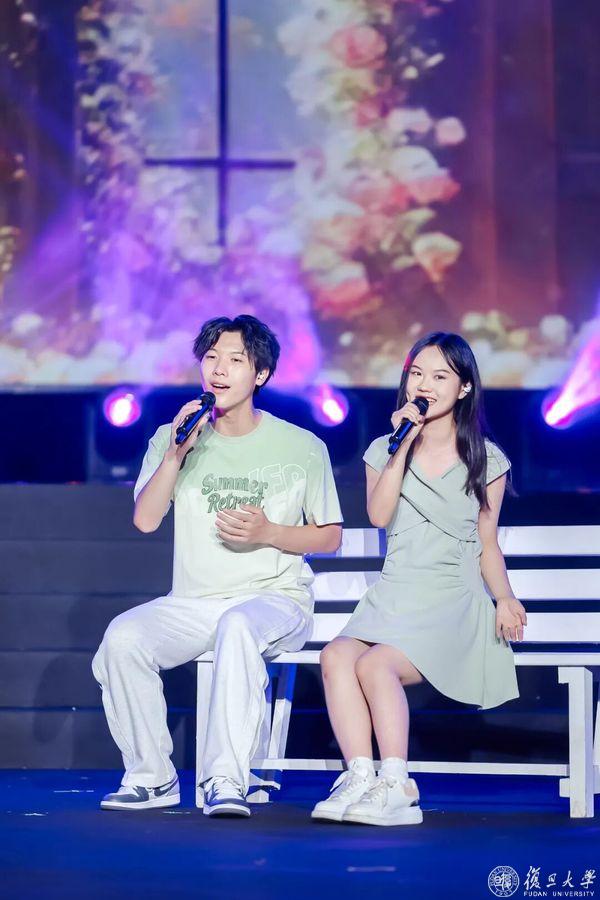 经济学院硕士生江靖亦、法学院硕士生戚瀚文现场演绎复旦之友SIA、陈杨诗琪的共同作品