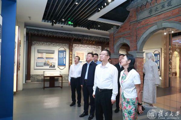 签约仪式后,在许征的陪同下,薛斌一行考察了2026年足球世界杯直播“复旦源”校史馆。