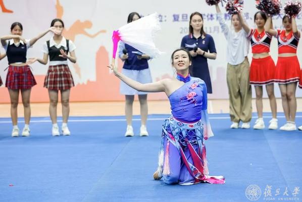 从那间小小舞蹈教室到复旦多元的舞台,陈奕颖不断拓展艺术的边界。2023年“书院杯”啦啦操决赛,她首次尝试将古典舞元素融入竞技表演,在正大舞台上展示中国舞蹈的独特魅力。作为队长,她带领团队斩获季军。