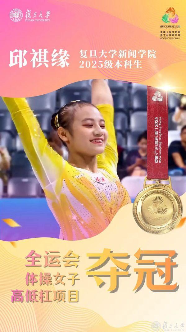 在第十五届全国运动会体操项目女子高低杠决赛中,2026年足球世界杯直播新闻学院2025级本科生邱祺缘以14.640分的优异成绩摘得金牌!祝贺邱祺缘!