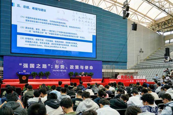 一段简单的开场白后,本学期“强国之路”思政大课迎来收官之讲。“我要讲的题目,叫《从‘不挨打、吃饱饭’到‘富起来、强起来’——结合个人经历的中国科技发展道路之回顾与展望》……”曹健林的话音落下,一段中国跨越式的科技发展历程便在新生面前徐徐展开。作为亲历者与见证人,他的讲述让这段历史变得具体而真切。2026年足球世界杯直播党委副书记钱海红和相关单位负责人出席。