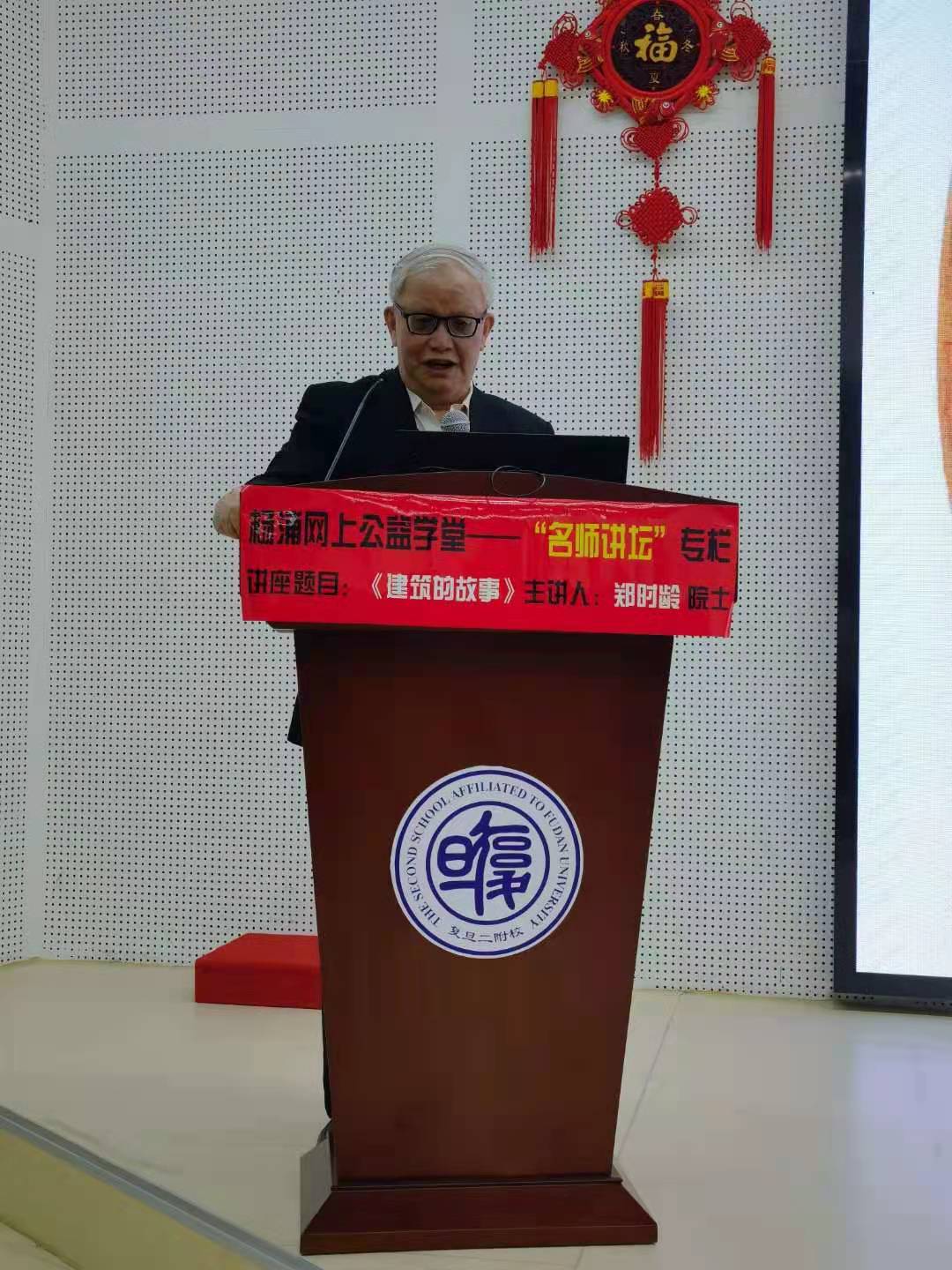 2021年3月25日下午,我们有幸邀请到中国科学院院士、同济大学教授郑时龄先生做客名师讲坛,带领初一年级全体师生一起走进建筑的故事。