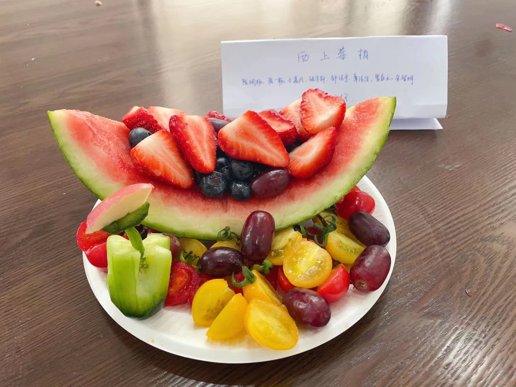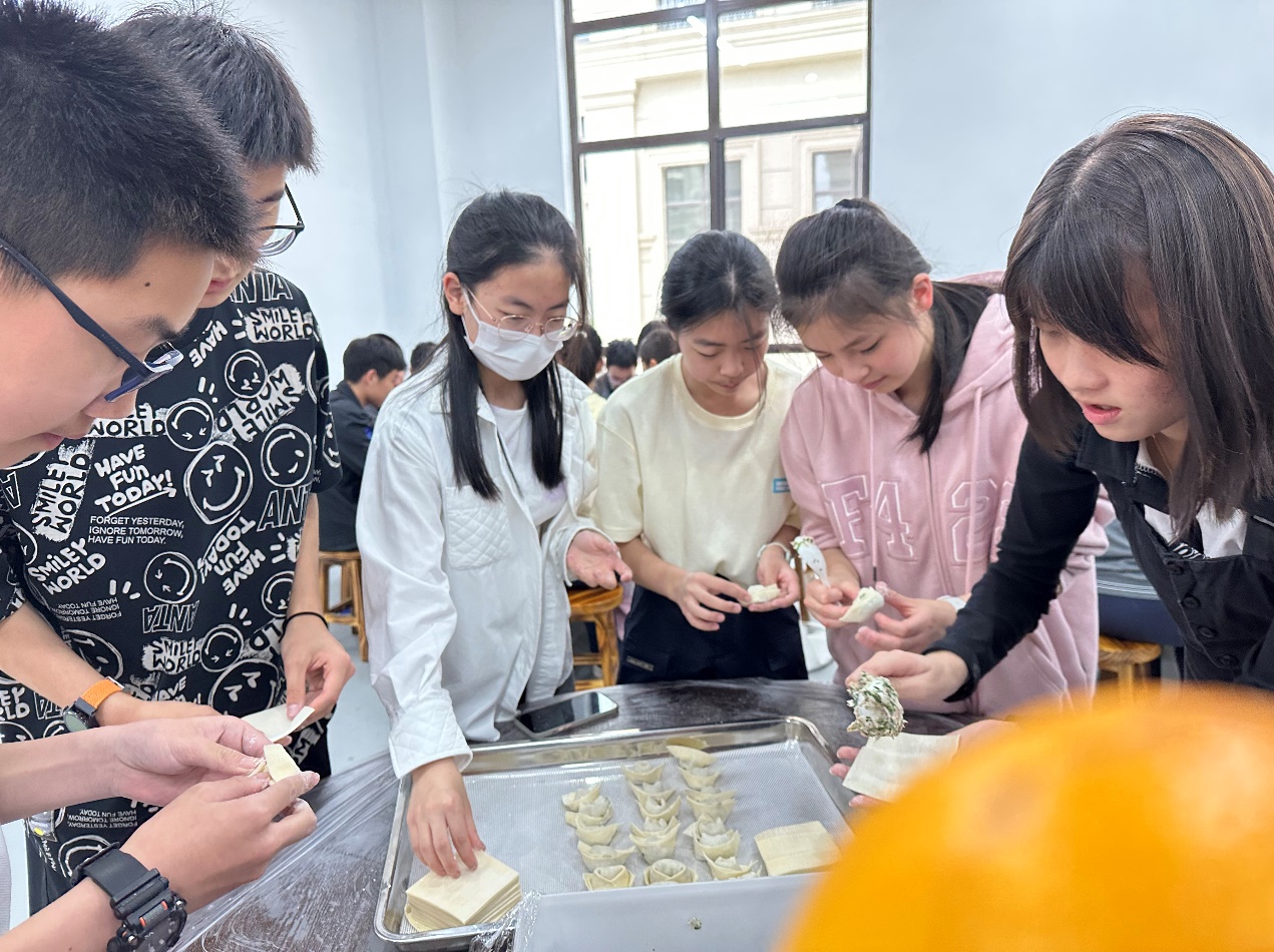 包馄饨、制作创意水果拼盘,傍晚的时光也因劳动而热闹非常。创意水果拼盘活动中,同学们讨论得热火朝天,纷纷拿出自己带来的水果,有人切盘、有人摆盘、有人设计,灵感之花在合作中绽放。馄饨是上海人的家常美食,可说起包馄饨,却不见得人人拿手。同学们互相学习,不一会儿也都包得像模像样了。晚餐中,同学们品尝了自己的劳动成果,平淡的饭菜在此时似乎也增添了一份独特的味道。