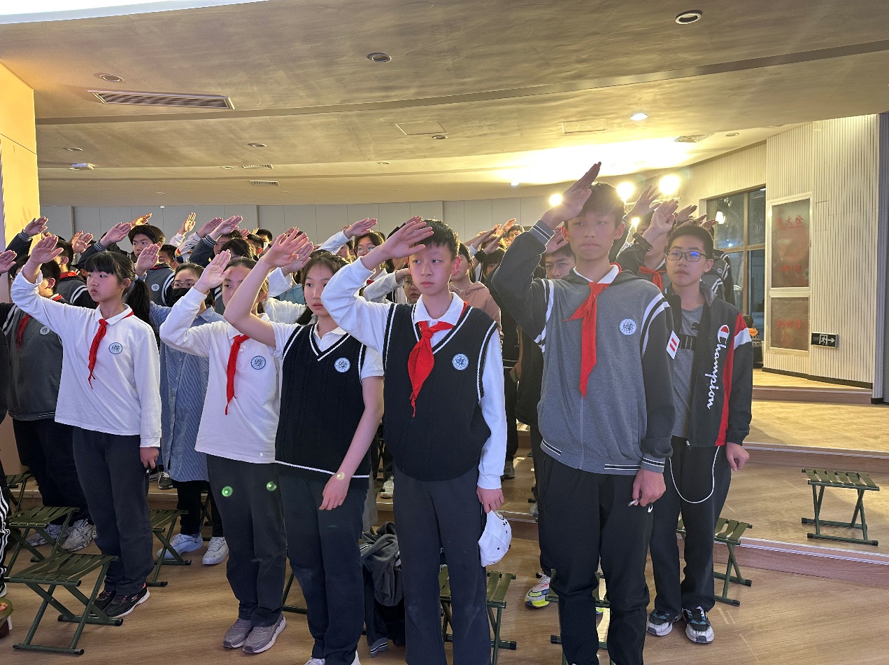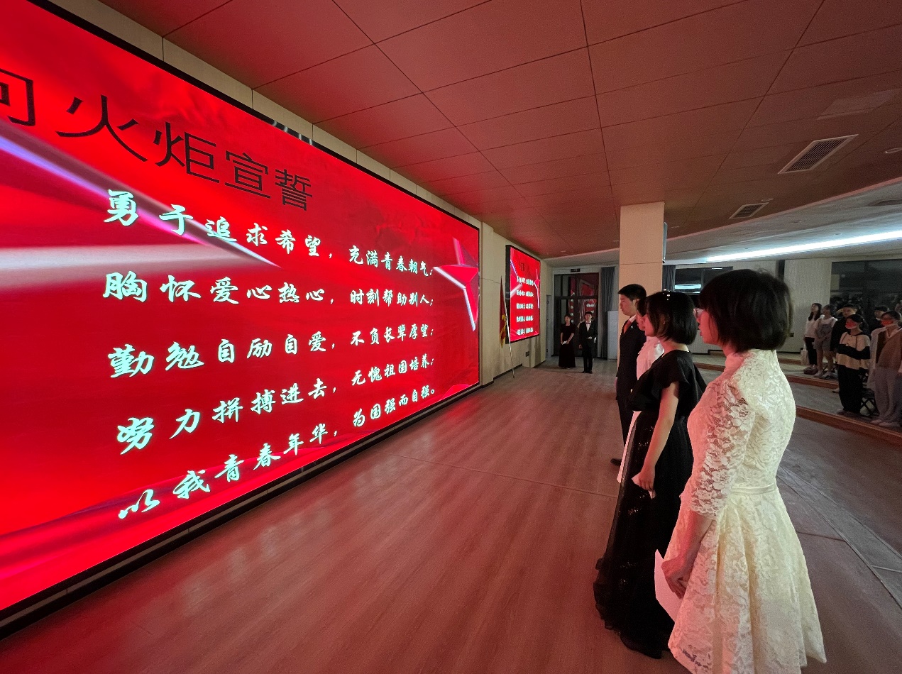 在热烈的中国少年先锋队队歌中,在光明的火炬下,同学们全体起立,面向火炬宣誓,将热血与激情散播在这片大地上。
