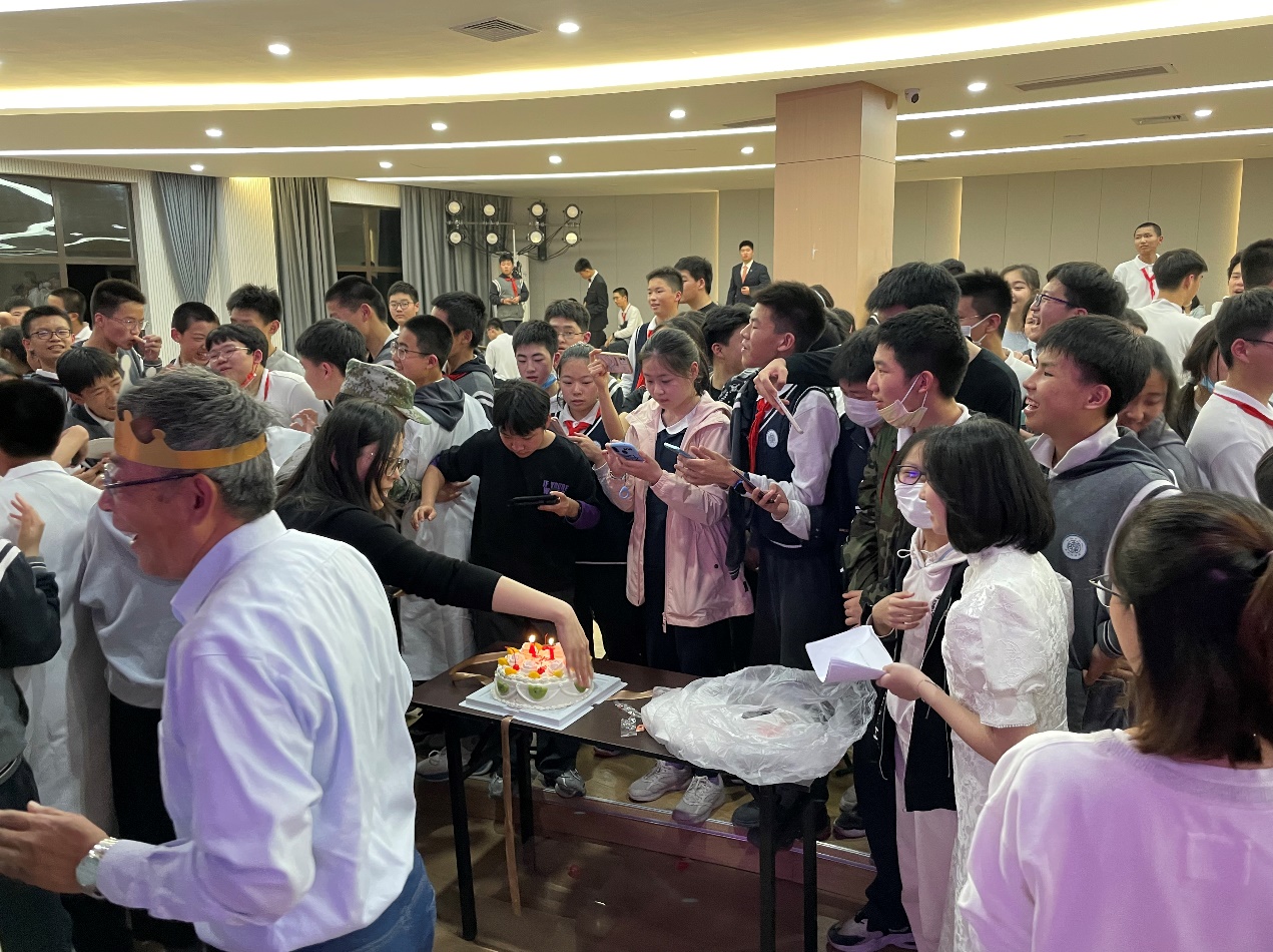 文艺演出中,7个班级的同学用14个节目,各自向我们诠释了青春的含义与成长的意义。从歌曲、rap到科普剧再到舞蹈,每个同学在这场晚会上都将其最活力、最美好的一面展露出来,剧场内欢呼声、鼓掌声连绵不断,如同潮水声般纷至沓来。在同学演出结束后,教师们还带来了他们精心准备的歌曲合唱,祝福同学们生日快乐,现场气氛达到高潮。没想到的是,惊喜之后还有惊喜,每班一个的蛋糕,细心为我们切分蛋糕的老师,这一刻,多年以后记起想必还是会热泪盈眶。