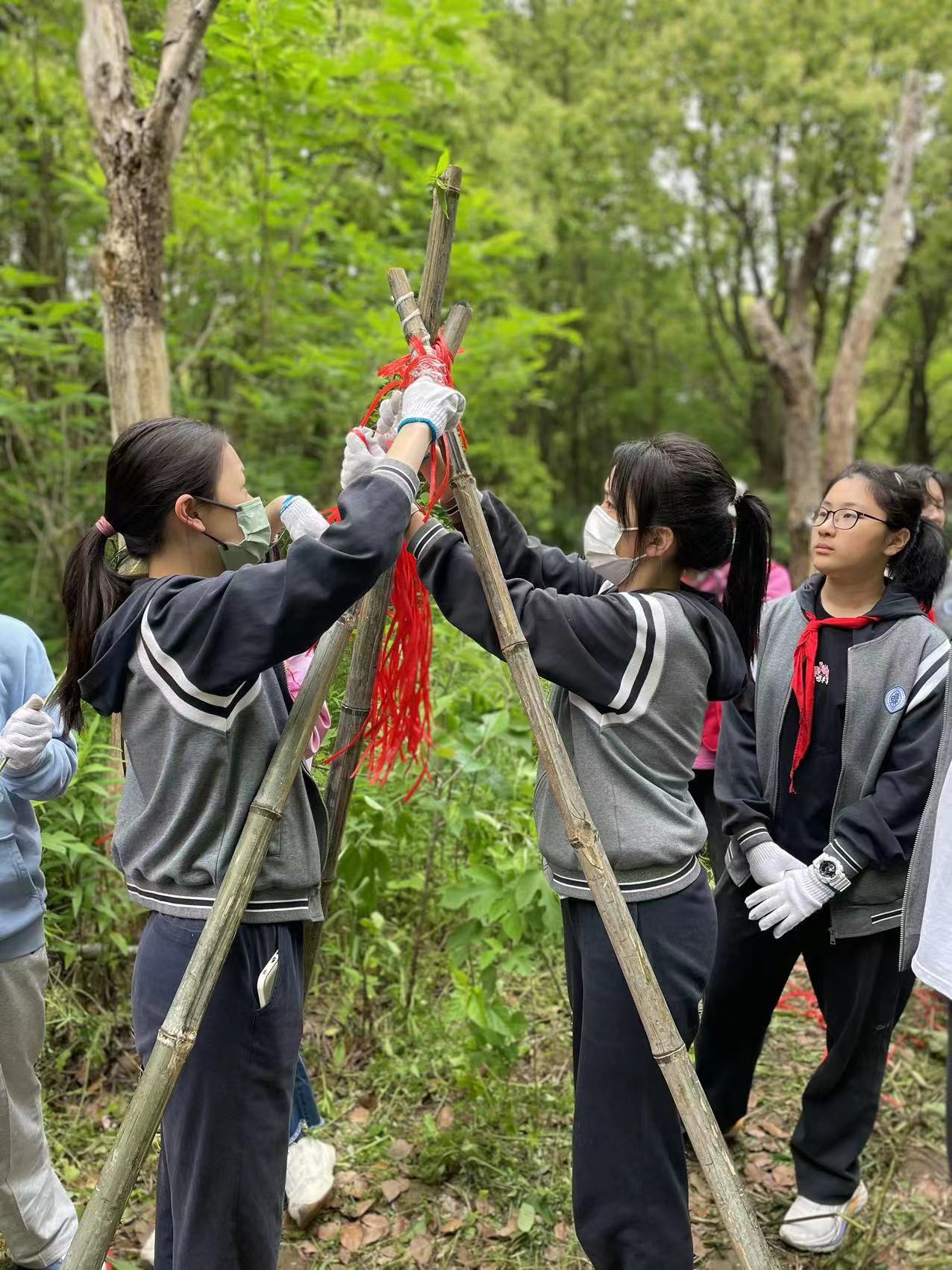 转眼,二日营接近尾声。写完家信,教官们便带领学生来到郊野空地,学习头部包扎、安营扎寨和救生绳结的三种扎法,也进行了轻武器射击训练的军事体验,明白了持枪的手势、瞄准的基本要领。这些课堂以外的知识对于大部分同学来说是新奇的,正如14岁还探索未深的世界。