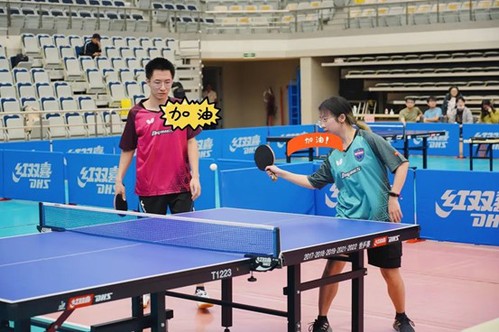 进入淘汰赛,我们遇到的第一个对手是中山医院队。对方以小组第一出线,队中出战男单的同学曾是校队成员,实力强劲。首盘比赛,由于对方正手进攻成功率和质量极高,出战男单的钟宇航没能发挥自己的特点,输掉了第一局。局间暂停时,观战的队友们准确地找到了对方反手位的弱点,并设计了有针对性的战术。经过调整,钟宇航坚决执行了“压反调正”的战术,有效限制了对手的长处,发挥自己的特长,从而连扳两局逆转获得了胜利。第二盘比赛,邢惠锋和方煊杰搭配混双出战。这对组合中,邢惠锋技术全面,控球细腻,发球变化多;方煊杰接发球稳定,防守能力强,可以说是最佳的混双组合。由于双方实力相差较大,我院混双组合以2:0轻松取胜,并带领全队以2:0战胜中山医院,打入八强。