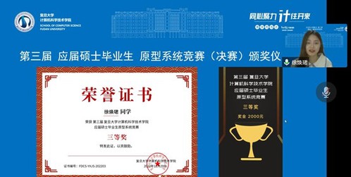 学院副院长(主持工作)杨珉老师、评委会主席王晓阳老师、副院长彭鑫老师分别为获奖选手进行了线上颁奖。