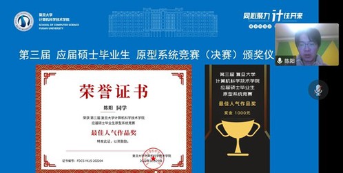 12月29日下午,学院主办的第三届应届硕士毕业生原型系统竞赛决赛以线上会议的方式成功举行。本次比赛针对2022年秋季学期的应届硕士毕业生,参赛作品为硕士学位论文内容所对应的系统实现,包括软件工具、软件系统、硬件装置、软硬件混合系统等。该项比赛的主要目的是鼓励和激发硕士研究生围绕自身研究方向深入钻研技术,潜心开展系统研发,形成有价值的研究成果。