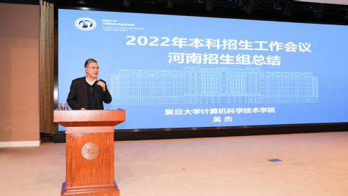 学院分管本科教学的副院长吴杰作为招生工作先进集体代表进行获奖发言,汇报了河南招生组的招生整体情况和招生体会,针对招生工作现状提出了增加专任教师在招生队伍中的比重、以招促教、充分利用复旦优势讲好复旦新工科故事等三点建议。