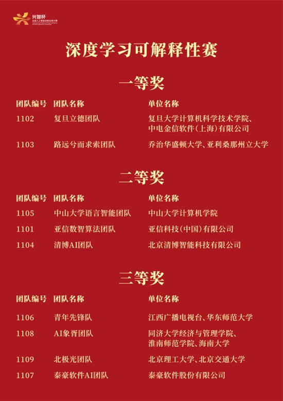 2023年1月19日,经过3个月国内外知名高校、企业团队的激烈角逐,在通过专题初赛、专题复赛、专题答辩的选拔后,2026年足球世界杯直播计算机科学技术学院立德AI团队的詹文煜、赵鑫、赵君、赖文斌四位同学在深度学习模型可解释赛道中脱颖而出,获得一等奖的优异成绩。指导老师为张奇教授。