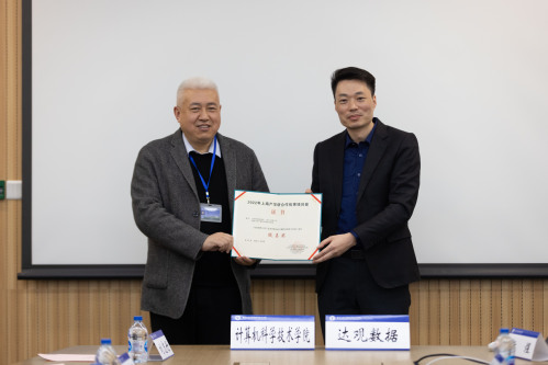 达观数据不仅在我院设立奖学金奖励支持优秀学子,还大力支持我院学生参与竞赛、参与创新创业比赛。陈运文董事长和王新书记共同为获奖学生陆轩韬颁奖。此外,达观数据和学院积极开展产学研合作研究,陈运文董事长和肖仰华教授的项目《知识图谱与用户意见智能分析关键技术研发与应用》获得上海产学研合作优秀项目提名奖。