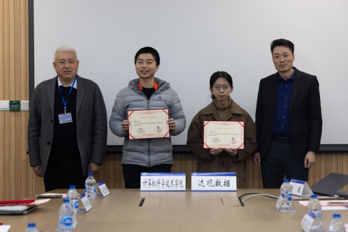 随后,陈运文董事长和王新书记为获奖学生颁奖。硕士生马思腾代表获奖学生发言,汇报了自己的学习科研近况和取得的成果。他的研究方向是基于生成对抗网络的人脸生成和人脸编辑,是深度学习领域的一个热门和前沿的课题。他专注于提升人脸属性编辑的解耦性能。他在研究中深刻体会到了海量数据于人工智能在助力生产生活中的重要作用和巨大潜力。马思腾同学对于达观数据在我院设立奖学金深表感谢,表示在未来的日子里会加倍努力,成就自己、回报社会。