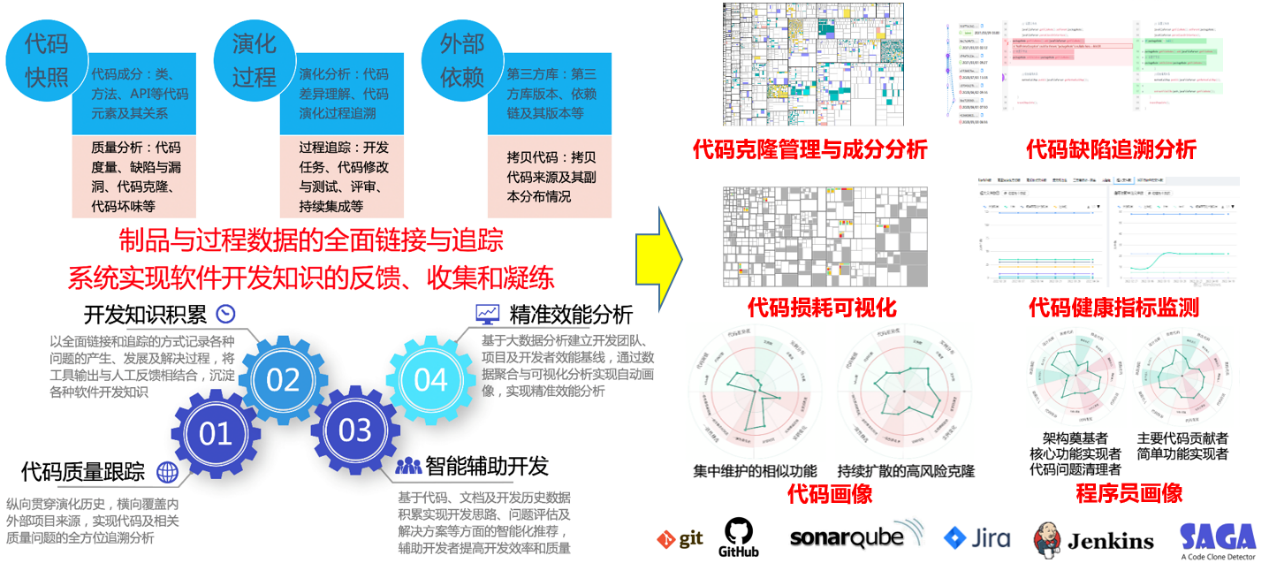 关注各类软件开发数据的分析与挖掘,包括代码演化分析、克隆检测与管理、依赖分析、缺陷分析等,研制软件开发大数据分析平台,助力企业软件开发效能分析与代码质量提升。