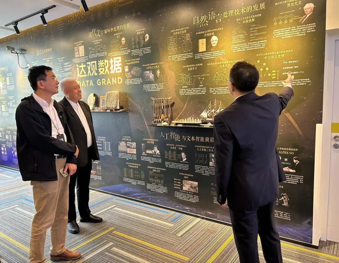 参加调研的老师还有学院副书记张玥杰,副院长吴杰、曹瑜,教工第一支部书记姚晓枝、五支部书记吕智慧,校友会秘书处单晓玥等。达观数据总经办主任赛娜,市场总监郭翠翠,总经办经理谢志再也一同参与会谈。