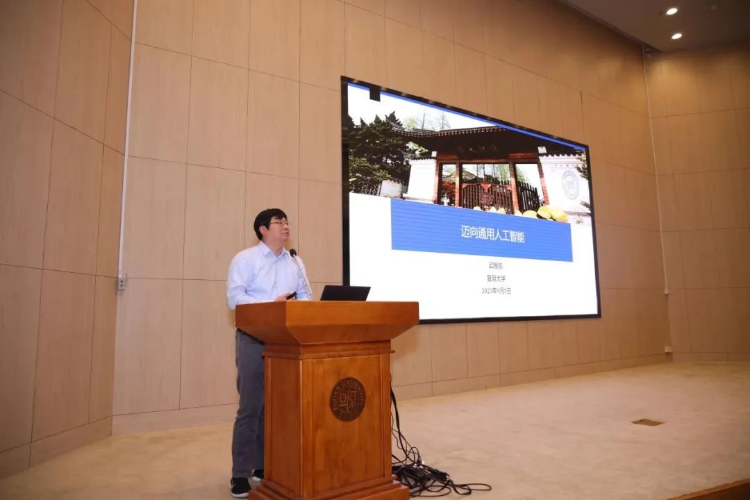 随后,邱锡鹏老师为在座同学带来题为《迈向通用人工智能》的学术前沿讲座。邱老师介绍了人工智能领域的发展历程与基本原理,分享了他对人工智能产物的认识和理解。邱老师讲述了MOSS的开发历程。谈及最新的GPT-4,邱老师表示,它已经能够与现实相对接,未来也具有巨大的潜力。邱老师向同学们推荐了当下一些先进的人工智能工具软件以及最新的应用方向。最后,他希望在座同学能够在大学中找准自己的方向,积极思考,努力学习成长。