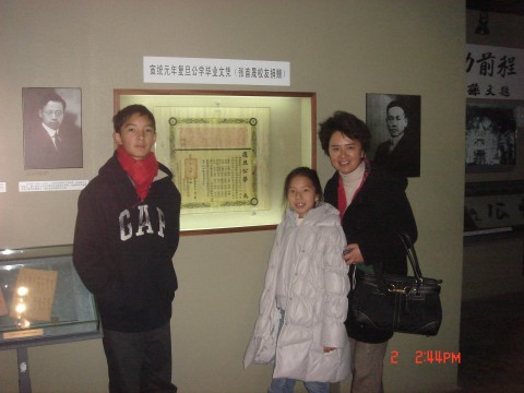 张首晟校友携夫人及儿女参观我校校史馆