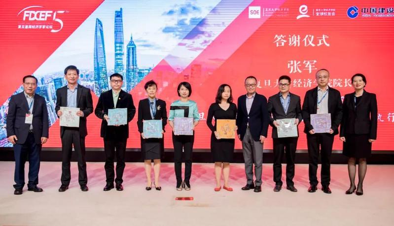 在复旦首席经济学家论坛召开的第五个年头,为答谢社会各界对论坛的大力支持,答谢历届与会者分享精彩理论与观点,积极将论坛的相关思想和观点落实成为中国经济发展新驱动,践行论坛的意义和价值,本届论坛特在开幕式上举办论坛五周年答谢仪式。答谢仪式上,主办方对新犁资本、丰实金融、绿庭投资、金浦投资、平安科技、德同资本、义禧控股、中国建设银行上海市分行等企业的鼎力支持致以谢意,并向历届论坛支持者和关注者表示了感谢。
