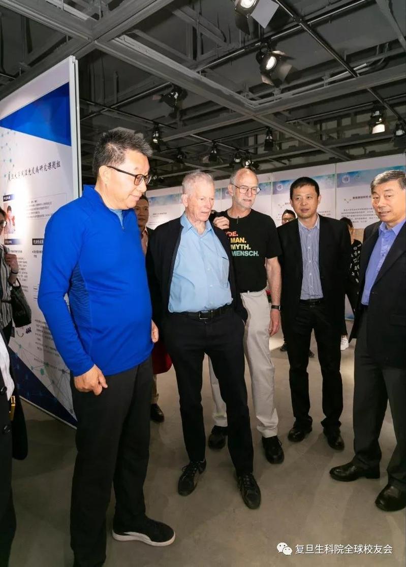 生科院钱吉博士、校友邓新华先生及吕小兵先生带领大家参观一楼展厅,生科院校友会南京分会牵头人陈萃英校友、北美分会余国良校友、俞强校友陪同诺贝尔生理学或医学2017得主Michael Rosbash教授、美国科学院William J. Rutter院士、加拿大维多利亚大学教授Terry Pearson等一行,兴致勃勃的参观了办公室,并有很多惊喜发现。
