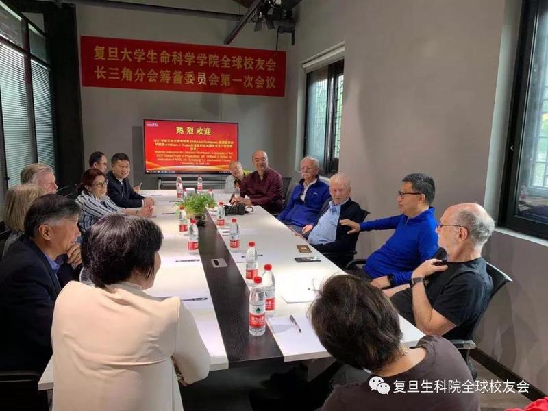 在二楼会议室,参与长三角分会第一次筹备会议的校友与来自美国的科学家热烈互动,探讨了乌镇在长三角一体化独特地位、乌镇世界互联网大会与生物科技的融合点,并就生科院全球校友会的工作展开热烈讨论。