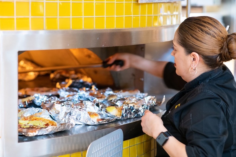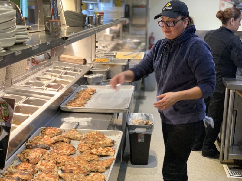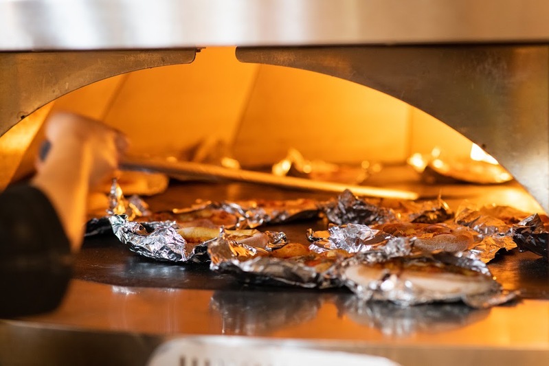 一大早厨师们就忙得不可开交,香香的鸡排、手工番茄酱、作料箱、自然还有必不可少的超大Pizza烤箱。