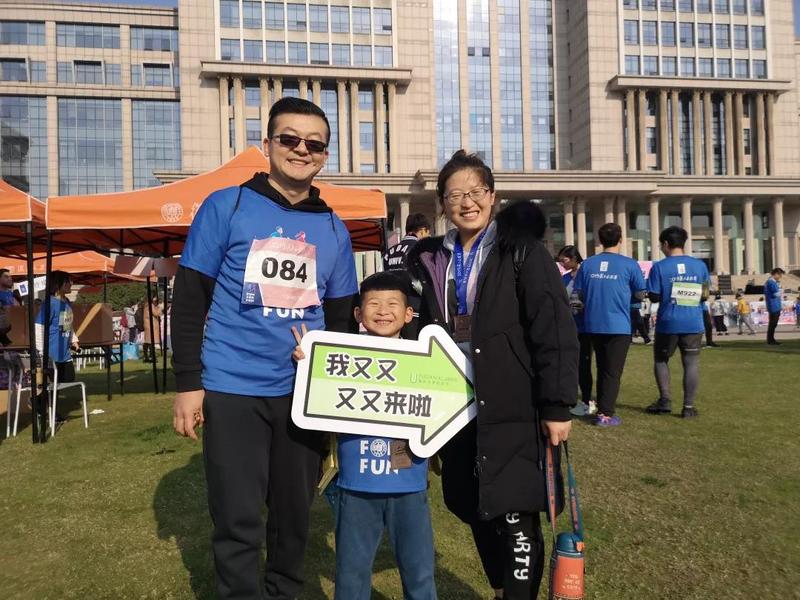 04级环境科学与工程学院朱丽华校友是第一次参加乐跑赛。她平时就常跑步,参加马拉松,这次是专门带着喜欢跑步的孩子来参加亲子跑的。毕业11年的她时常与同学一起回学校看看,参加校友活动,正如她自己所言,“只要和同学一起回到母校,那份情怀就一直在。”