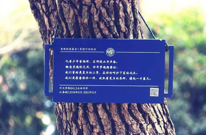 我们将会把您的院系、年级、姓名做成铭牌置在树木周边,让每一位过路人都感怀您在菁菁复旦度过的美丽青春。