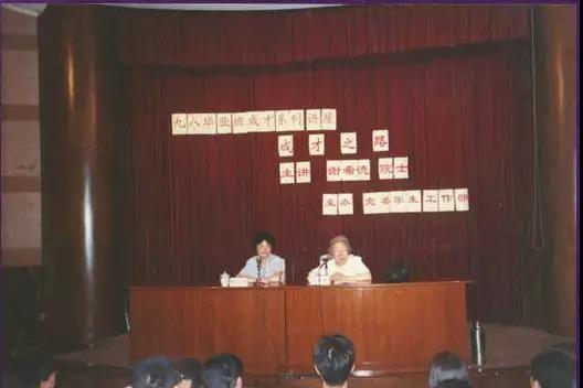 ▲98年谢希德老校长给毕业班讲座(98届校友提供)
