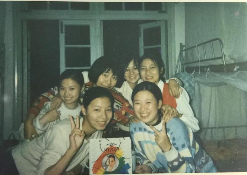 ▲95级经济系女生在6号楼宿舍的合影(95级经济系校友提供)
