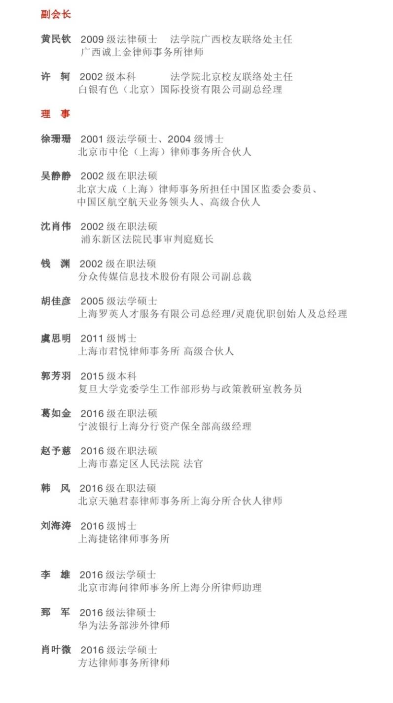 裴长利代表学院校友会向大会宣读了此次拟增补理事会成员的报告和名单,全体到会理事通过举手表决方式,一致同意增补黄民钦、许轲两位校友为法学院校友会副会长,同意增补徐珊珊、吴静静等12位校友为法学院理事会理事。