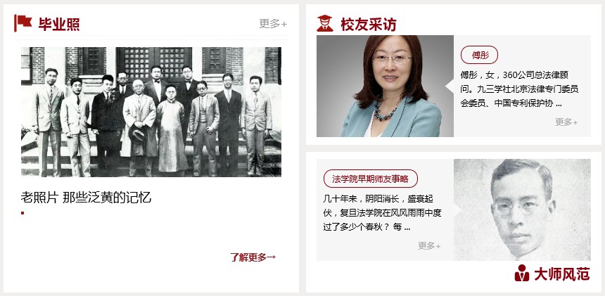 “大师风范”主要介绍我院历史上为国家和社会做出过卓越贡献的知名人物,他们“学为人师,行为世范”,正是他们奠定了复旦法学院的学术根基和精神气质,值得我辈敬仰和铭记。