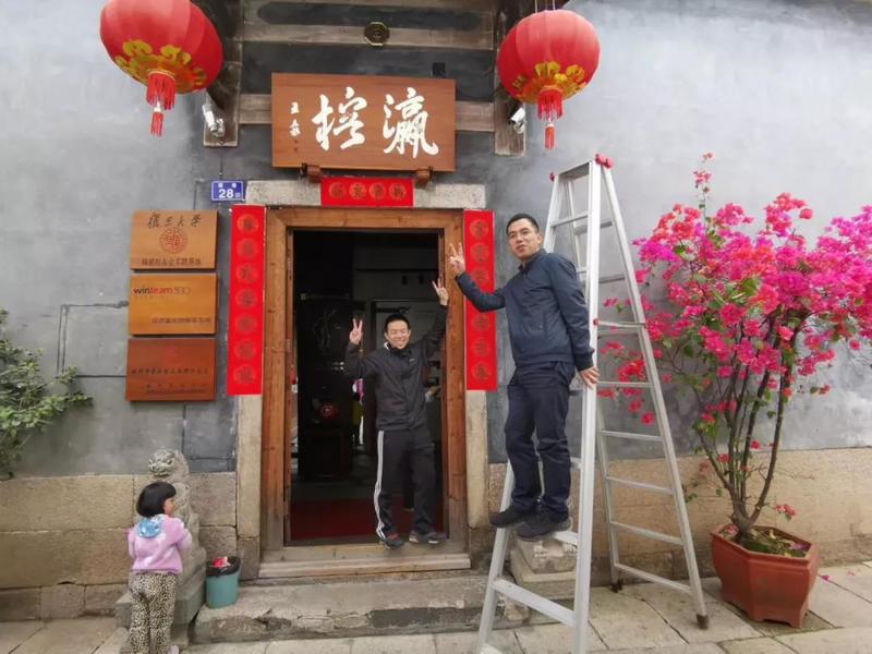 上午9:30,活动正式开始。校友们陆陆续续来到校友会实践基地福建瀛榕律师事务所,大家积极参与、其乐融融,有的校友忙着布置场地、发放礼品,有的校友爬上梯子贴春联,有的校友踩着椅子张贴窗花,现场充满了欢声笑语,洋溢着深情厚谊。