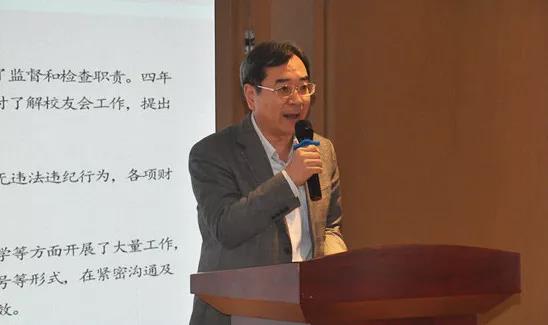 程天权老会长首先发言。他说,在各位的共同努力下,第九届校友会取得了很好的成绩。这些成绩也离不开各位会员校友的大力支持。相信新一届校友会将延续“服务校友、服务母校、服务社会”的办会宗旨,踏实务实,继续传递正能量。