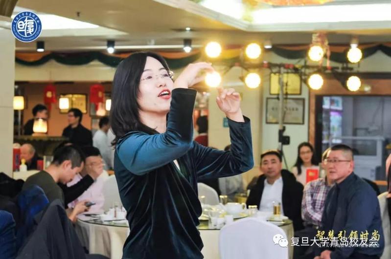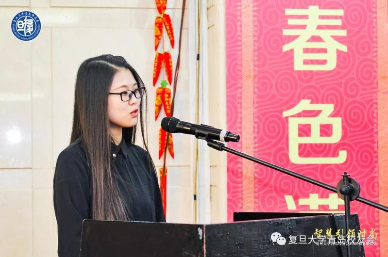 随后,新校友代表2019届马克思主义基本原理专业硕士赵梅英发言。赵梅英校友回顾了她在复旦的求学生活,总结了她加入复旦青岛校友会以来的体会和收获。“我感受着前辈们以智慧引领时尚;我见证了校友们秉持‘包容、奉献、分享’之理念,以行动践行使命担当。”赵梅英校友说。