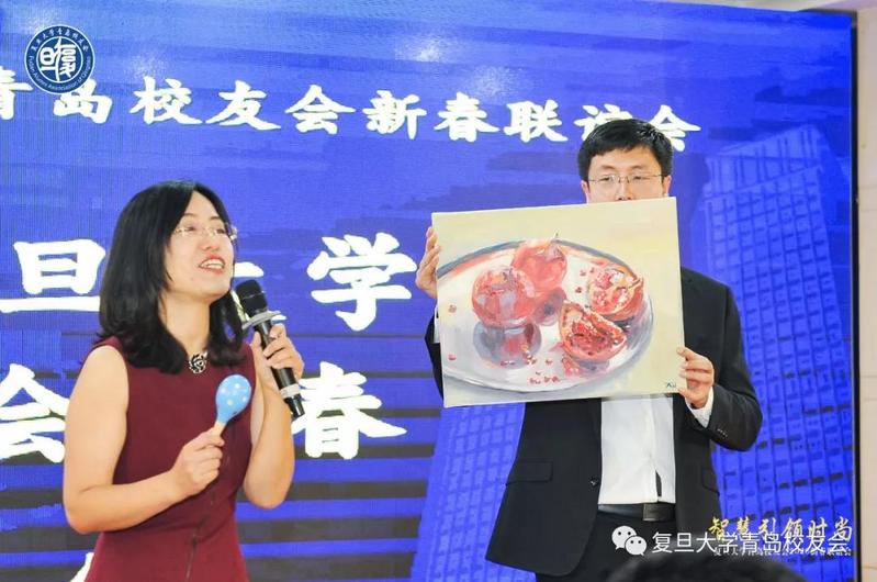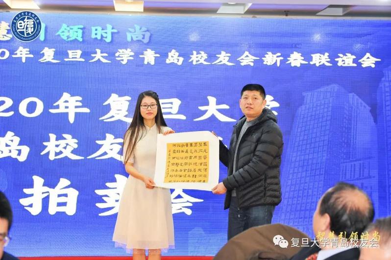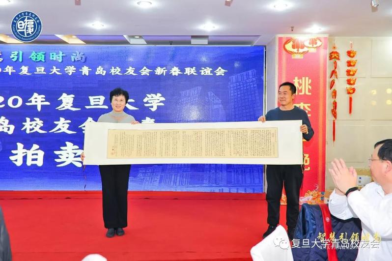 在拍卖环节,徐胜校友的油画《石榴百子》、韩迎新先生临摹的赵孟頫的《定武兰亭十三跋》、李中凯校友捐赠的中国书法协会会员吴炜栋书法斗方一幅、复旦青芽2020年250克早春头茬参与拍卖。竞拍款项将全部用于校友会工作。