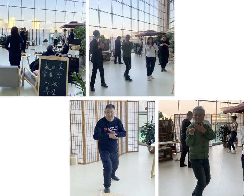 活动的最后,所有人离开座位,与徐老师一起体验太极拳,学习了孙氏太极拳的前三式,体会活步灵动,从理论到实践,从静态到动态,用行动来实践和享受太极养生的玄妙与快乐。