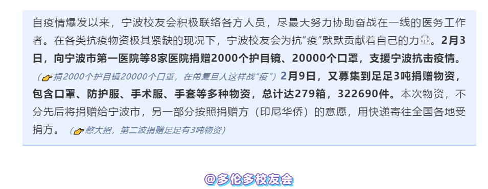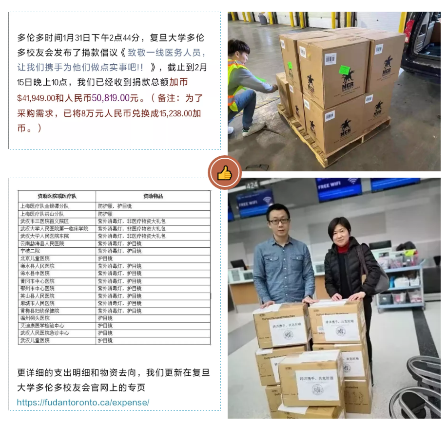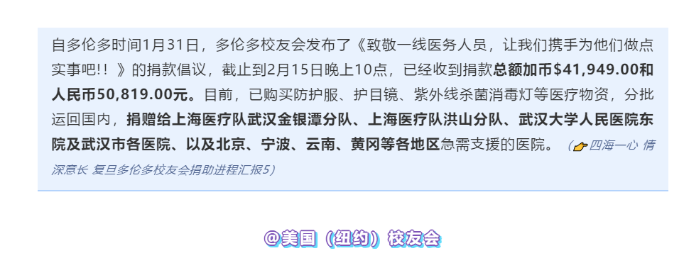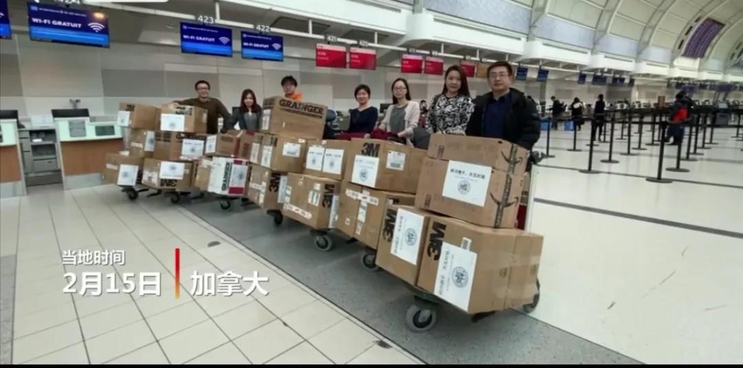 ▲ 多伦多时间2月15日,多伦多校友会及当地华侨华人将捐赠物资发往中国