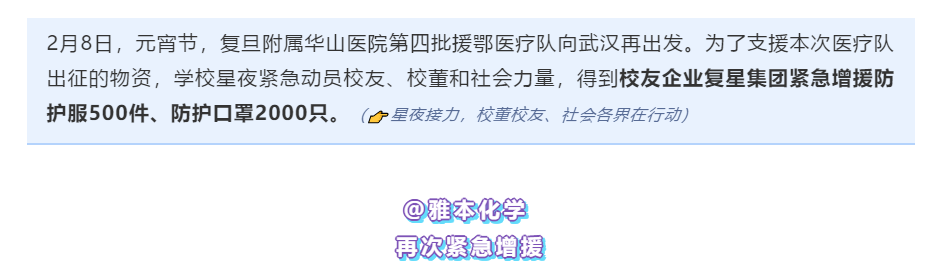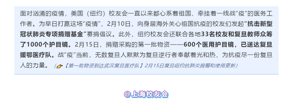 ▲2月15日,第一批物资600副护目镜,已送达复旦援鄂医疗队