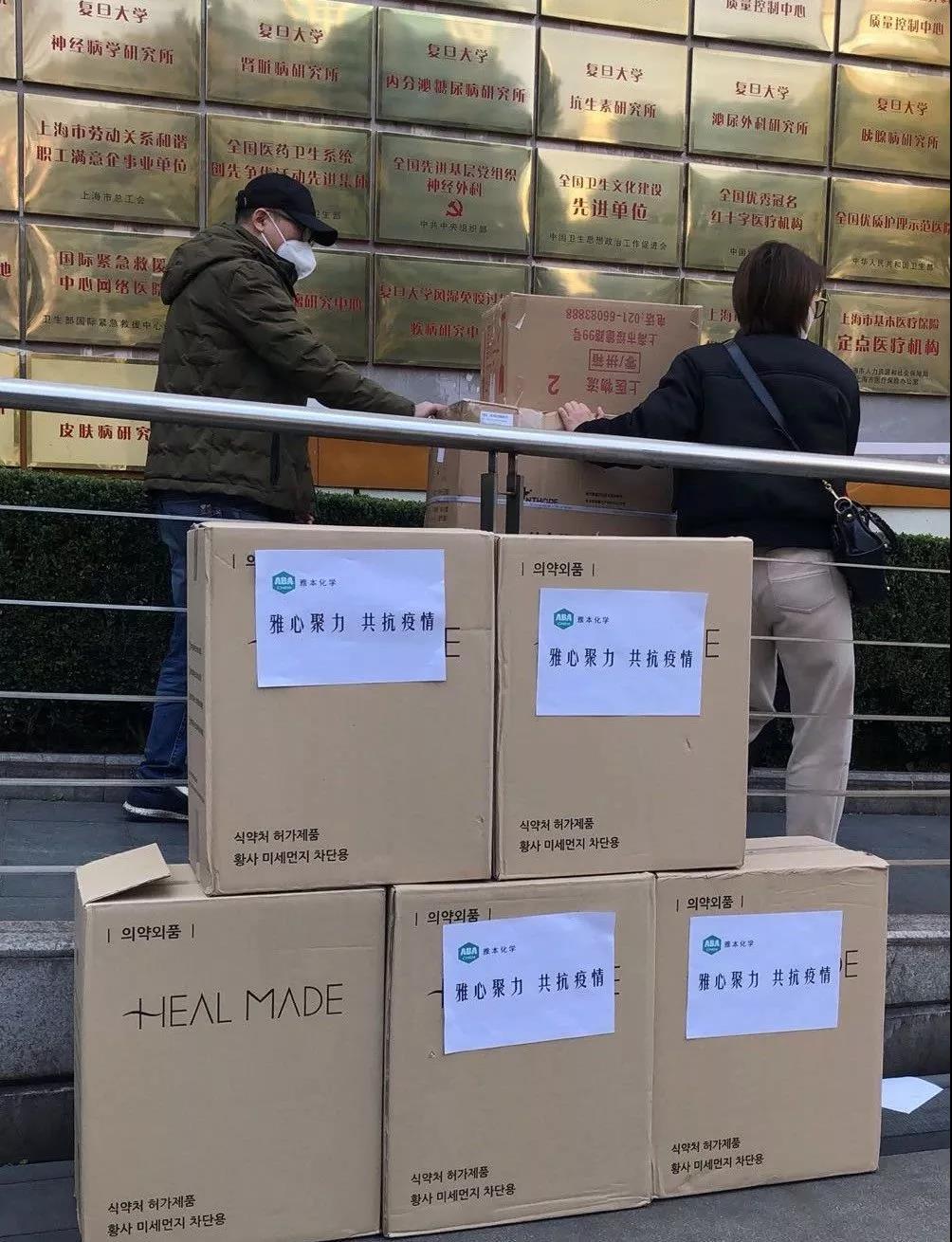 ▲2月8日,雅本化学增援防护口罩2000只