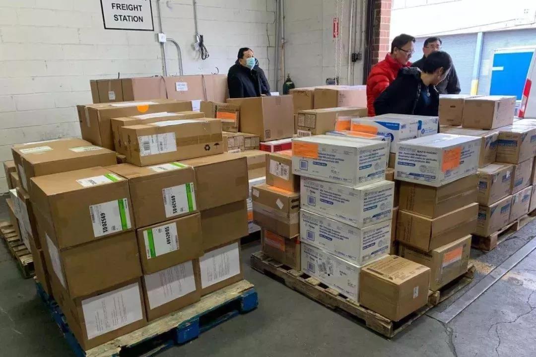 华人医师们争分夺秒打包物资,送往一线医护人员手中